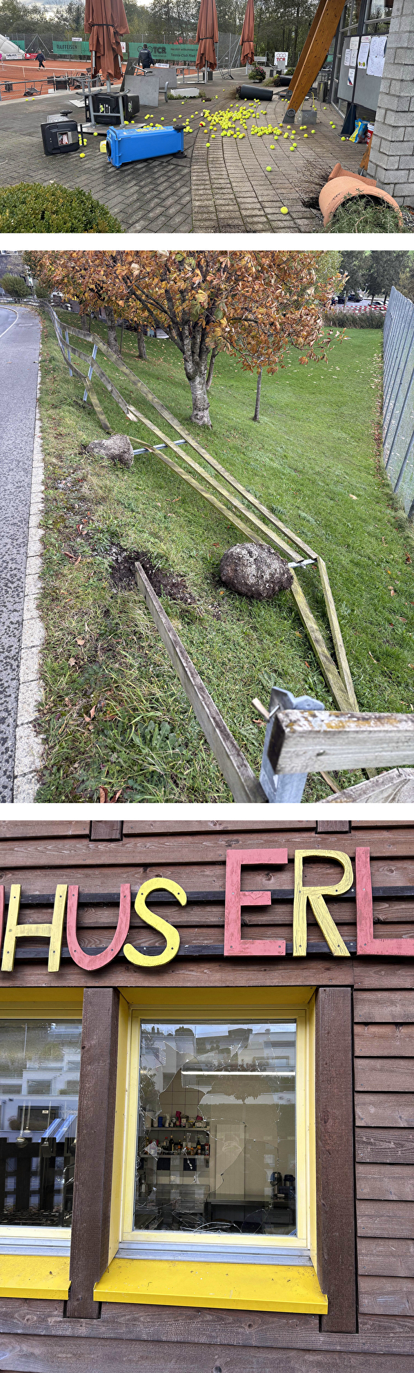 In der Nacht auf Samstag, 25. Oktober 2025, wurden auf der Anlage des Tennis-Clubs Ried an der Bachtobelstrasse in Wollerau mehrere Blumentöpfe umgestossen, Stühle und Tische auf einen Tennisplatz geworfen sowie weitere Gegenstände beschädigt.