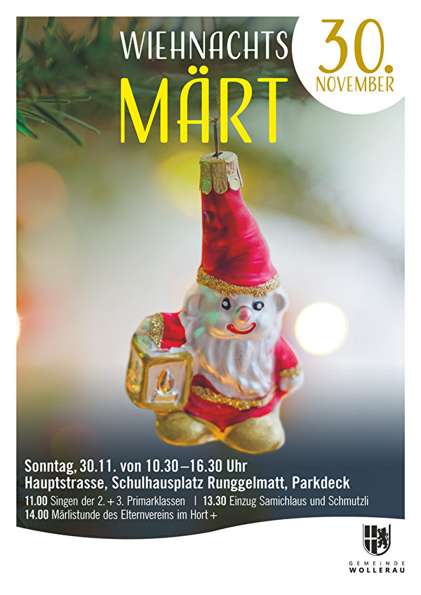 Auch in diesem Jahr findet der beliebte Wollerauer Wiehnachtsmärt auf dem Schulhausplatz Runggelmatt, dem Parkdeck sowie auf der Hauptstrasse statt.